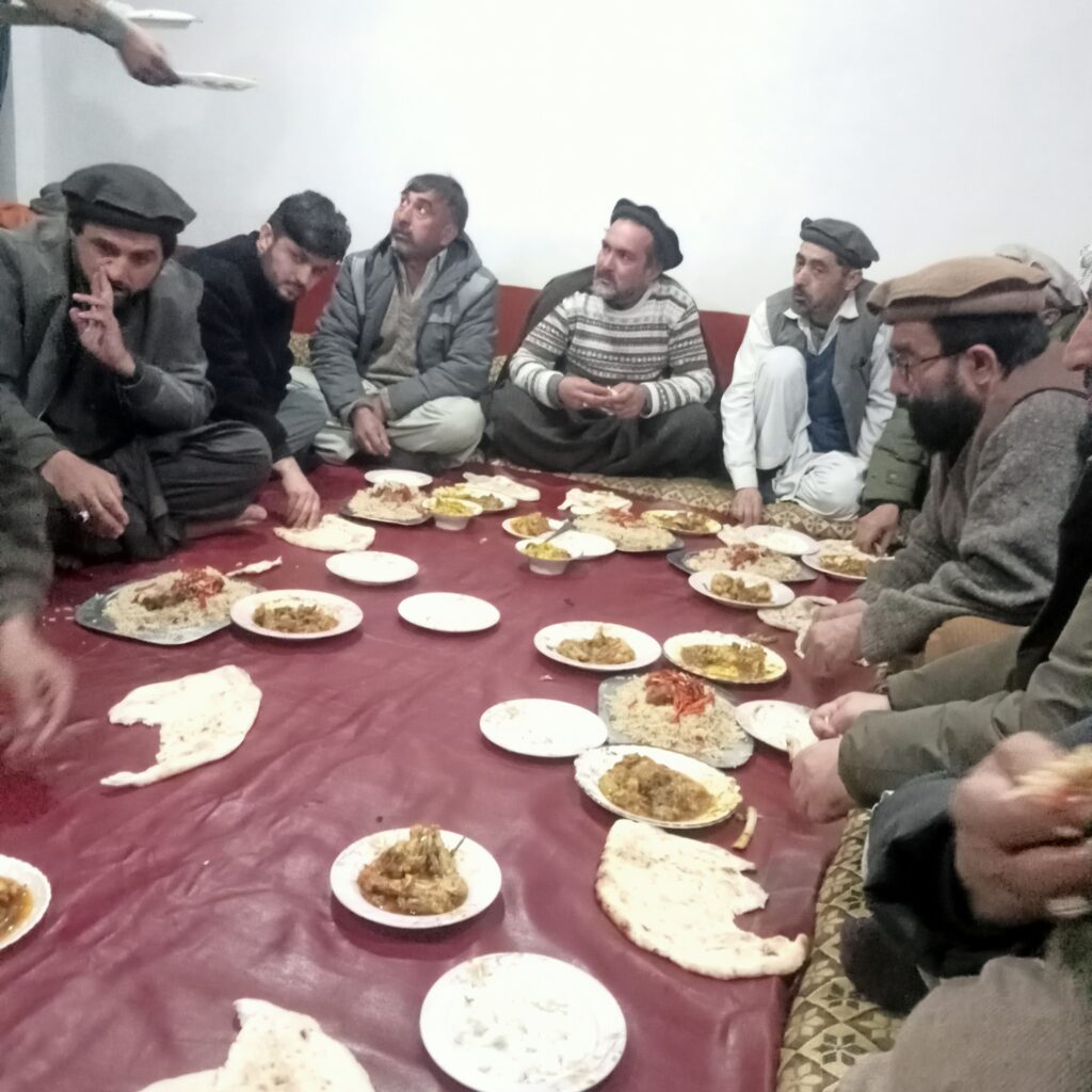 چترال لوئر (پریس ریلیز)تجار یونین چترال بازار کے صدر چارویلو نور احمد خان اپنے کابینہ ارکان اور چترال بازار کی معزز تاجر برادری کے ہمراہ محترم سعید بھائی کی جانب سے دی گئی خصوصی عشائیہ کی دعوت میں شریک ہوئے۔ یہ تقریب نہایت دوستانہ ماحول میں منعقد ہوئی، جہاں تجار برادری کے درمیان باہمی محبت، یکجہتی اور تعاون کی فضا نمایاں رہی۔تقریب میں صدر نور احمد خان اور ان کے رفقاء نے سعید بھائی کی مہمان نوازی کا شکریہ ادا کیا اور ان کے چھوٹے بھائی کی شادی کے موقع پر دل کی گہرائیوں سے مبارکباد پیش کی۔ انہوں نے دُعا کی کہ اللہ تعالیٰ نو بیاہتا جوڑے کو خوشیوں، محبت اور کامیابیوں سے بھرپور زندگی عطا فرمائے۔اس موقع پر صدر تجار یونین نے کہا کہ اس طرح کی تقریبات نہ صرف سماجی رشتہ داریوں کو مضبوط کرتی ہیں بلکہ چترال کی تاجر برادری کو ایک پلیٹ فارم پر متحد کرنے میں بھی اہم کردار ادا کرتی ہیں۔ کابینہ ارکان اور تاجروں نے بھی اپنے خیالات کا اظہار کرتے ہوئے سعید بھائی اور ان کے خاندان کے لیے نیک خواہشات کا اظہار کیا۔عشائیہ خوشگوار محفل، دعاؤں اور مبارکبادوں کے تبادلے کے ساتھ اختتام پذیر ہوا، جبکہ تاجر برادری نے مستقبل میں بھی اسی یکجہتی اور محبت کو برقرار رکھنے کے عزم کا اظہار کیا۔