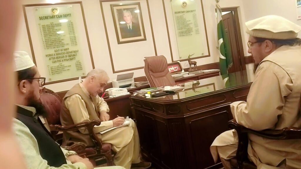 پشاور (پریس ریلیز)سابق ایم پی اے مولانا ہدایت الرحمن نے پشاور سیکرٹریٹ میں فائنانس سیکرٹری محمد آصف صاحب سے ملاقات میں موڑکہو روڈز کے حوالے سے اپنے تحفظات پیش کیے۔انہوں نے بتایا کہ اپنے دور میں 10 کروڑ روپے اس روڈ کے لیے رکھے تھے جن میں سے 5 کروڑ خرچ بھی ہو چکے ہیں, مگر کام 30 فیصد بھی مکمل نہیں ہوا۔فائنانس سیکریٹری نے معاملے کا نوٹس لیتے ہوئے C&W جناب اسرار صاحب چیف انجینئر  کو ہدایت دی کہ مولانا  کے تمام تر تحفظات دور کئے جائے۔چیف انجینئر نے مکمل تعاون کی یقین دہانی کرائی ۔بعد ازاں مولانا  نے اپنے تحفظات سی ایم کمپلین سیل میں بھی جمع کرائے، جہاں 21 دن کے اندر پیشرفت کی یقین دہانی کروائی گئی