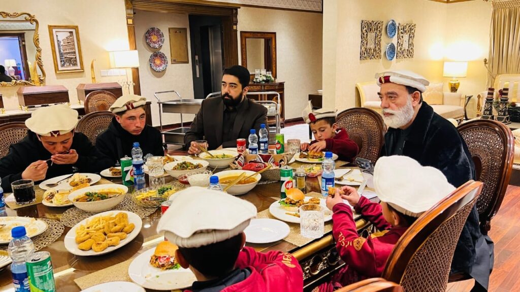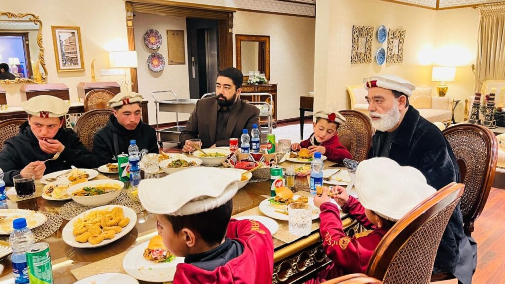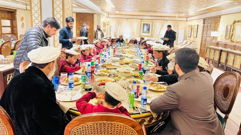 چترال لوئر (نمائندہ نوائے چترال نیوز)سینیٹر طلحہ محمود کا حمیدہ ایجوکیشن اینڈ بورڈنگ اکیڈمی دنین، چترال لوئر کے بچوں کے اعزاز میں ظہرانہ ۔ اس موقع پر سینیٹر محمد طلحہ محمود کے ساتھ ان کے صاحبزادہ محمد مصطفیٰ بن طلحہ نے بھی شرکت کی انہوں نے بچوں کے ساتھ مل کر کھانا کھایا۔ اس موقع پر بچوں کے لئے اعلی کھانے کا انتظام کیا گیا تھا ۔ اس موقع پر بچوں کے لیے سردی سے بچاؤ کے لیے گرم کوٹ، خوبصورت گھڑیاں اور دیگر تحائف بھی پیش کیے گئے۔ طلحہ محمود صاحب نے بچوں کے تعلیمی و تربیتی ٹور کے لیے بھی خصوصی طور پر تعاون کیا اور کہا کہ ا س وقت جو بچے اس پروگرام میں شریک نہ ہو سکے ہیں ان کے لیے بھی الگ سے ٹور کا انتظام کیا جائے گا