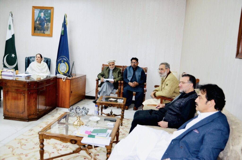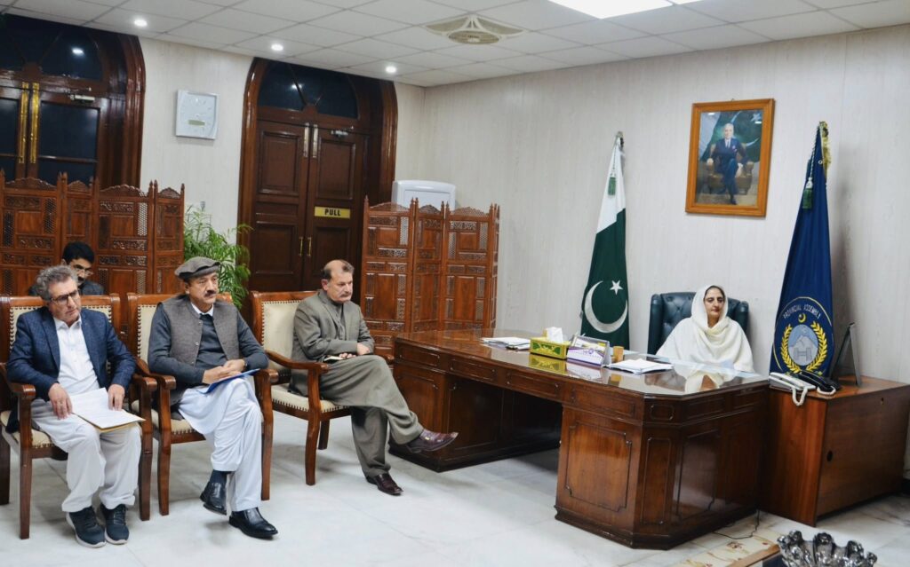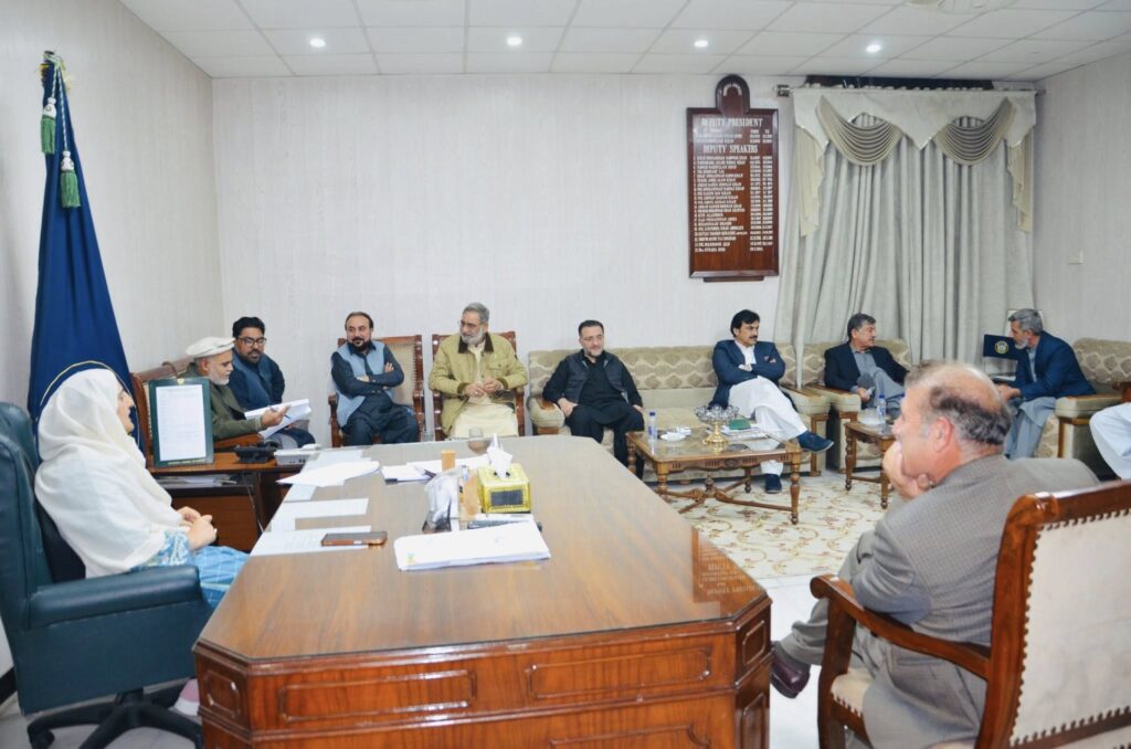 پشاور(پریس ریلیز)ضلع چترال اپر میں زیرالتوا صحت کے مختلف منصوبوں کے حوالے سے ڈپٹی سپیکر خیبر پختونخوا اسمبلی ثریا بی بی کی زیر صدارت ایک اعلی سطحی اجلاس انکے چیمبر میں منعقد ہوا. اجلاس میں سپیکر خیبر پختونخوا اسمبلی بابر سلیم سواتی و صوبائی وزیر صحت میاں خلیق الررحمان کے علاوہ سیکرٹری صحت, ڈی جی ہیلتھ سروسز ڈایریکٹر آئی ایم ایو, ڈی ایچ او اپر چترال و دیگر افسران موجود تھے.