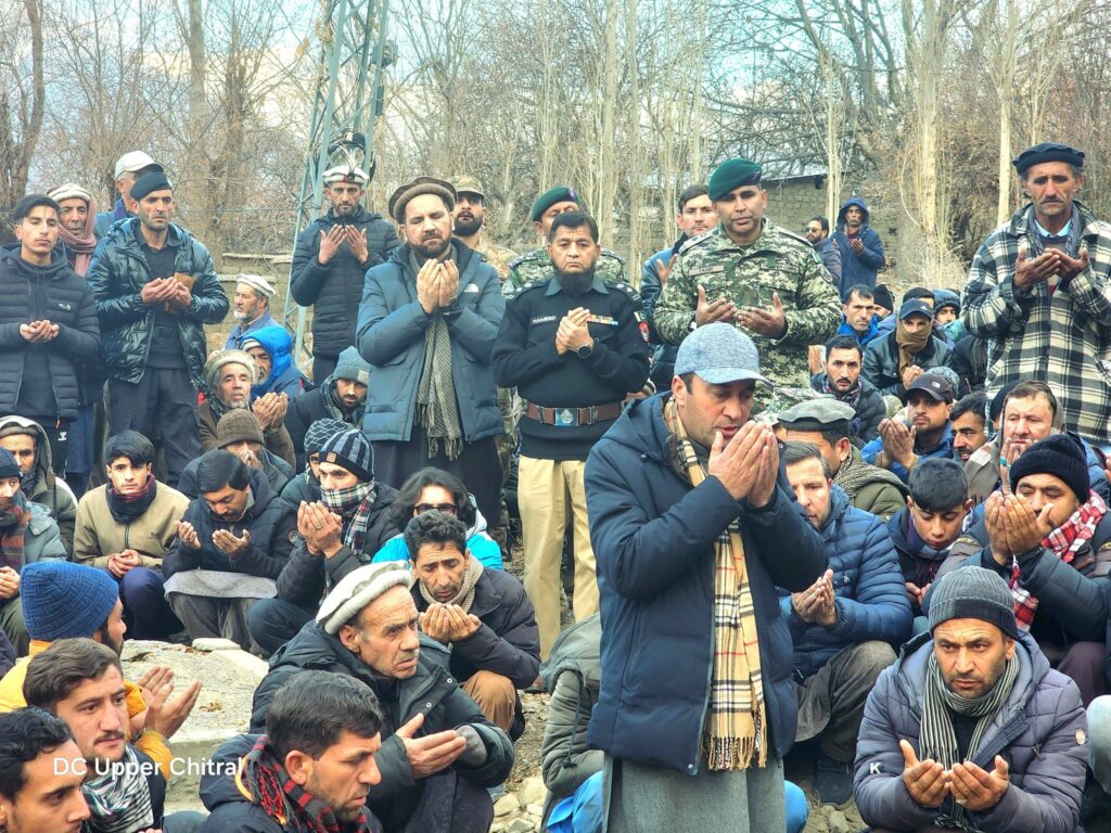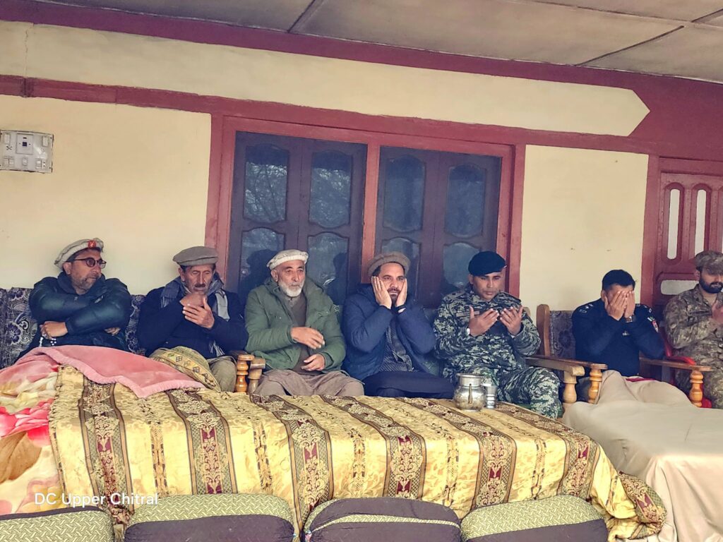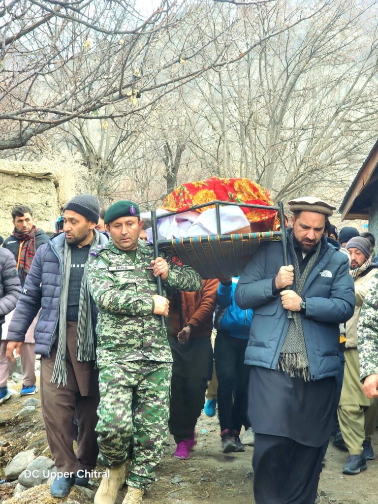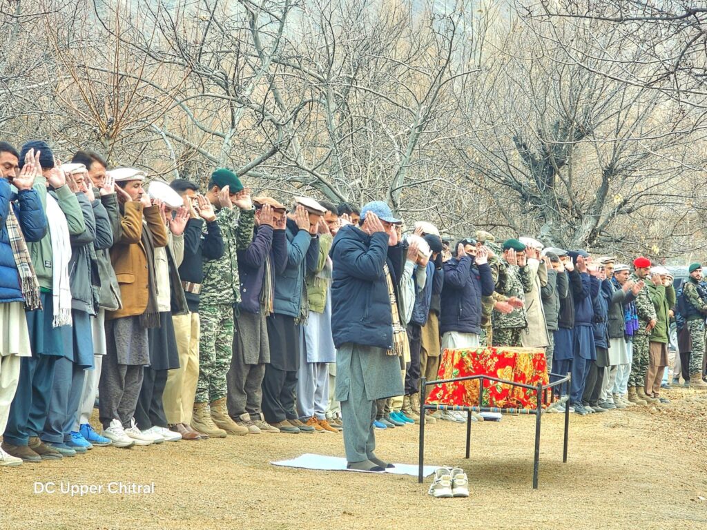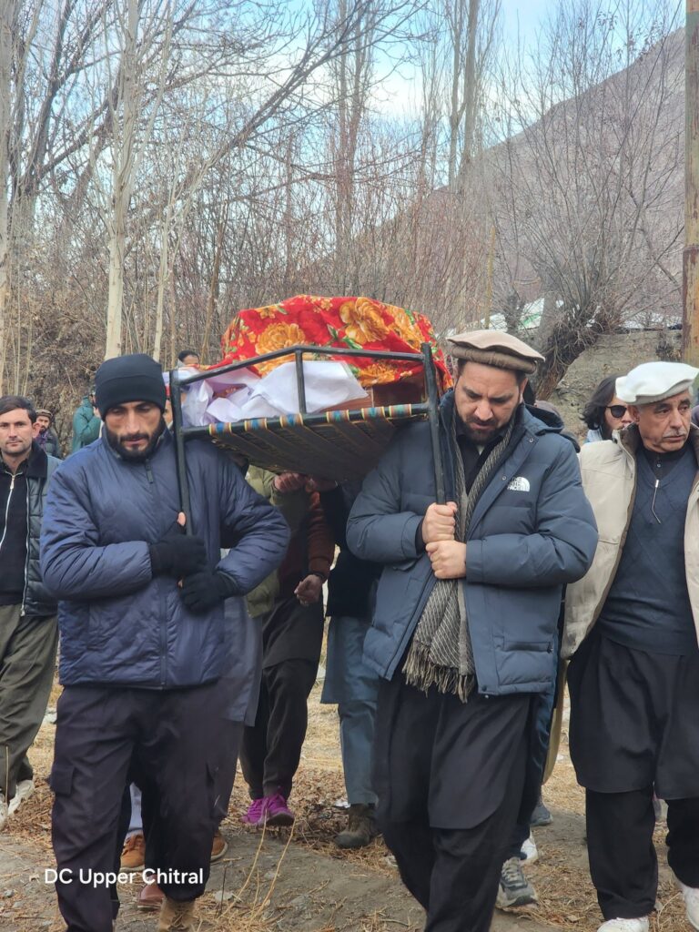 بونی (پریس ریلیز)ڈپٹی کمشنر اپر چترال جناب محمد عمران خان نے آج ایک المناک واقعے میں جاں بحق ہونے والے نوجوان وجاہت اللہ ولد عباس سکنہ مستوج ہوں کےنماز جنازے میں شرکت کی۔ مرحوم نوجوان فرنٹیئر کور پبلک سکول کا طالب علم تھا جس کی اچانک وفات نے نہ صرف اہلِ خانہ بلکہ پورے علاقے کو غمزدہ کر دیا ہے۔ڈپٹی کمشنر اپر چترال نے مرحوم کے جنازے کو کندھا دیا اور نمازِ جنازہ میں شرکت کے بعد مرحوم کے اہلِ خانہ سے ملاقات کی۔ اس موقع پر انہوں نے لواحقین کے ساتھ فاتحہ خوانی کی اور دکھ کی اس گھڑی میں دلی ہمدردی اور تعزیت کا اظہار کیا۔ڈپٹی کمشنر نے مرحوم کے والدین اور دیگر اہلِ خانہ کو ضلعی انتظامیہ اپر چترال کی جانب سے ہر ممکن تعاون کی یقین دہانی کراتے ہوئے کہا کہ ضلعی انتظامیہ اس غمناک سانحے میں متاثرہ خاندان کے ساتھ کھڑی ہے اور انہیں تنہا نہیں چھوڑا جائے گا۔ڈپٹی کمشنر اپر چترال نے مرحوم نوجوان کے لیے دعائے مغفرت اور پسماندگان کے لیے صبرِ جمیل کی دعا کی۔