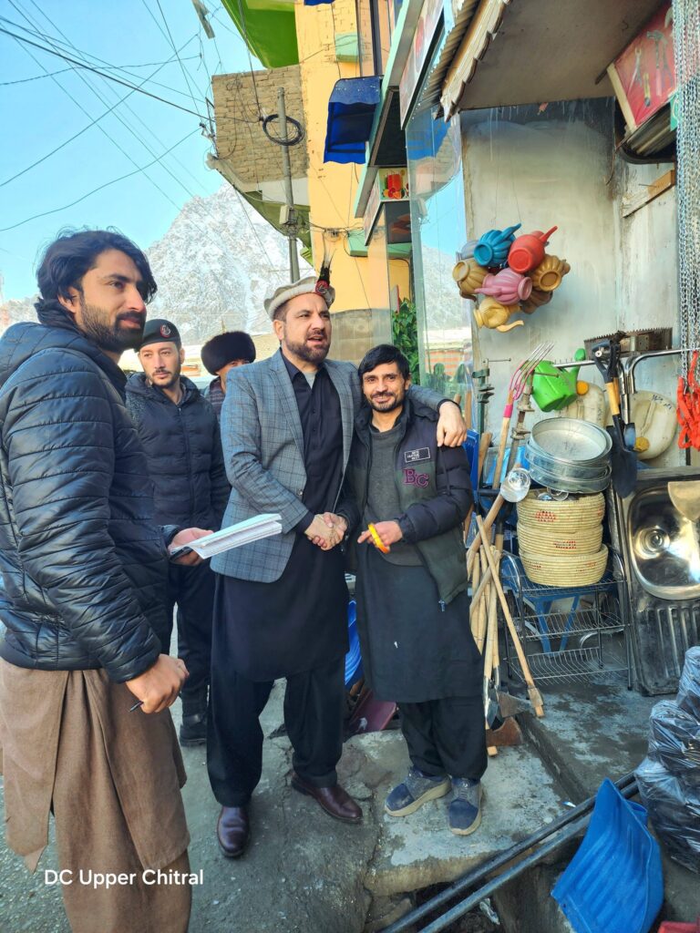 بونی (پریس ریلیز)ڈپٹی کمشنر اپر چترال جناب محمد عمران خان نے آج مہنگائی پر قابو پانے کے سلسلے میں ہیڈکوارٹر بونی بازار کا دورہ کیا جہاں عوام کی جانب سے مہنگا فروشی سے متعلق شکایات موصول ہو رہی تھیں۔ڈپٹی کمشنر نے سبزی فروشوں، چکن بڈیلرز اور قصابوں کے نرخناموں اور فروخت ہونے والی اشیائے خوردونوش کا معائنہ کیا اور قیمتوں کے بارے میں تفصیلی معلومات حاصل کیں۔دورانِ پرائس چیکنگ کسی قسم کی قانون شکنی مشاہدے میں نہیں آئی تاہم ڈپٹی کمشنر نے کاروباری حضرات کو سختی سے ہدایت کی کہ وہ مقررہ سرکاری نرخوں پر عملدرآمد کو یقینی بنائیں اور مہنگا فروشی سے مکمل اجتناب کریں, بصورت دیگر خلاف ورزی کی صورت میں سخت قانونی کارروائی عمل میں لائی جائے گی۔