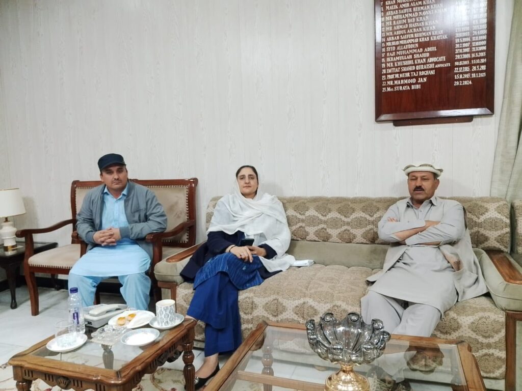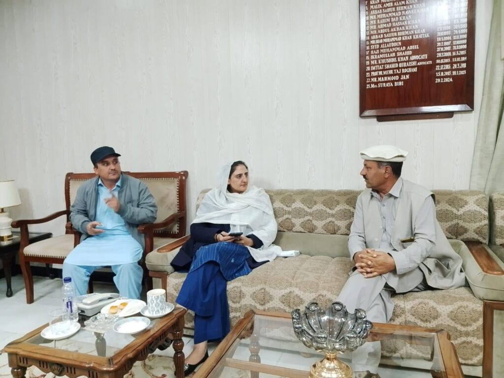 بونی (پریس ریلیز)چترال اپر کے ویلیج کونسل ہرچین و بروک کے چیئرمین شیر اعظم نے ڈپٹی اسپیکر کے پی کے ثریابی بی سے اُن کے دفتر میں ملاقات کی ہے انہوں نے حلقے کی مجموعی صورتحال اور بالخصوص ویلیج کونسل ہرچین و بروک میں جاری اور مجوزہ ترقیاتی کاموں پر تفصیلی تبادلۂ خیال کیا ہے۔اس موقع پر ڈپٹی اسپیکر محترمہ ثریا نے یقین دہانی کرائی کہ ہرچین میں پائپ لائن منصوبے اور دو آبپاشی واٹر چینلز کے منصوبے جلد شروع کئے جائیں گے تاکہ علاقے کے عوام کو پانی کی سہولیات میسر آ سکیں۔ڈپٹی سپیکر ثریا بی بی نے گورنمنٹ ہائیر سیکنڈری سکول ہرچین میں اساتذہ کے خالی اسامیوں کو جلد پورا کرنے کی یقین دہانی کرائی ہے۔انہوں نے مزید بتایا کہ اپنے اعلان کے مطابق نیشنل بینک آف پاکستان کی شاخ ہرچین لاسپور میں کھولنے کے سلسلے میں وہ بہت جلد گورنر اسٹیٹ بینک سے ملاقات کے لئے کراچی کا دورہ کریں گی تاکہ اس منصوبے کو حتمی شکل دی جا سکے.ڈپٹی اسپیکر نےعلاقے میں جاری ترقیاتی کاموں کو بھی جلد پایۂ تکمیل تک پہنچانے کا وعدہ کیا۔ویلیج کونسل چیئرمین شیر اعظم نے ان تمام منصوبوں پر ڈپٹی اسپیکر کا اپنی جانب سے اور علاقے کی عوام کی جانب سے شکریہ ادا کیا۔انہوں نے بروک بی ایچ یو میں ڈاکٹر کی تعیناتی پر بھی ڈپٹی اسپیکر محترمہ ثریا کا خصوصی شکریہ ادا کیا اور کہا کہ یہ اقدام علاقے میں صحت کی سہولیات کی بہتری میں اہم کردار ادا کرے گا۔علاقے کے عوام نے اس ملاقات اور اعلانات کو خوش آئند قرار دیتے ہوئے امید ظاہر کی کہ یہ منصوبے جلد عملی شکل اختیار کریں گے۔