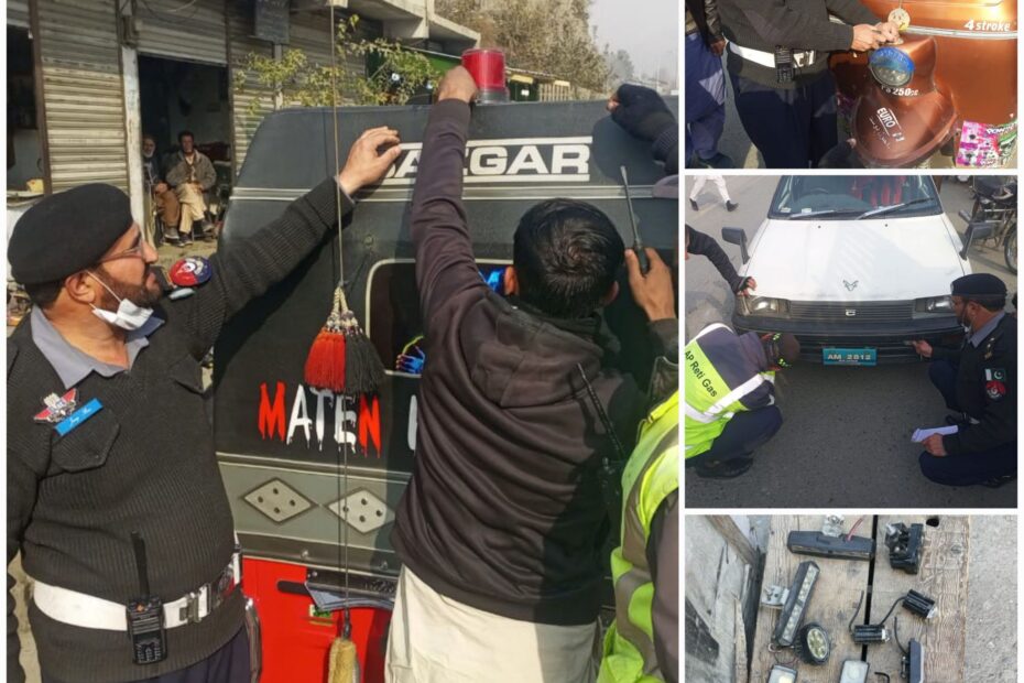 لوئر چترال ٹریفک پولیس کی غیر قانونی فلیش لائٹ، فینسی لائٹس کے خلاف خصوصی مہم، درجنوں گاڑیوں او رموٹر سائیکلوں کے خلاف قانونی کاروائی